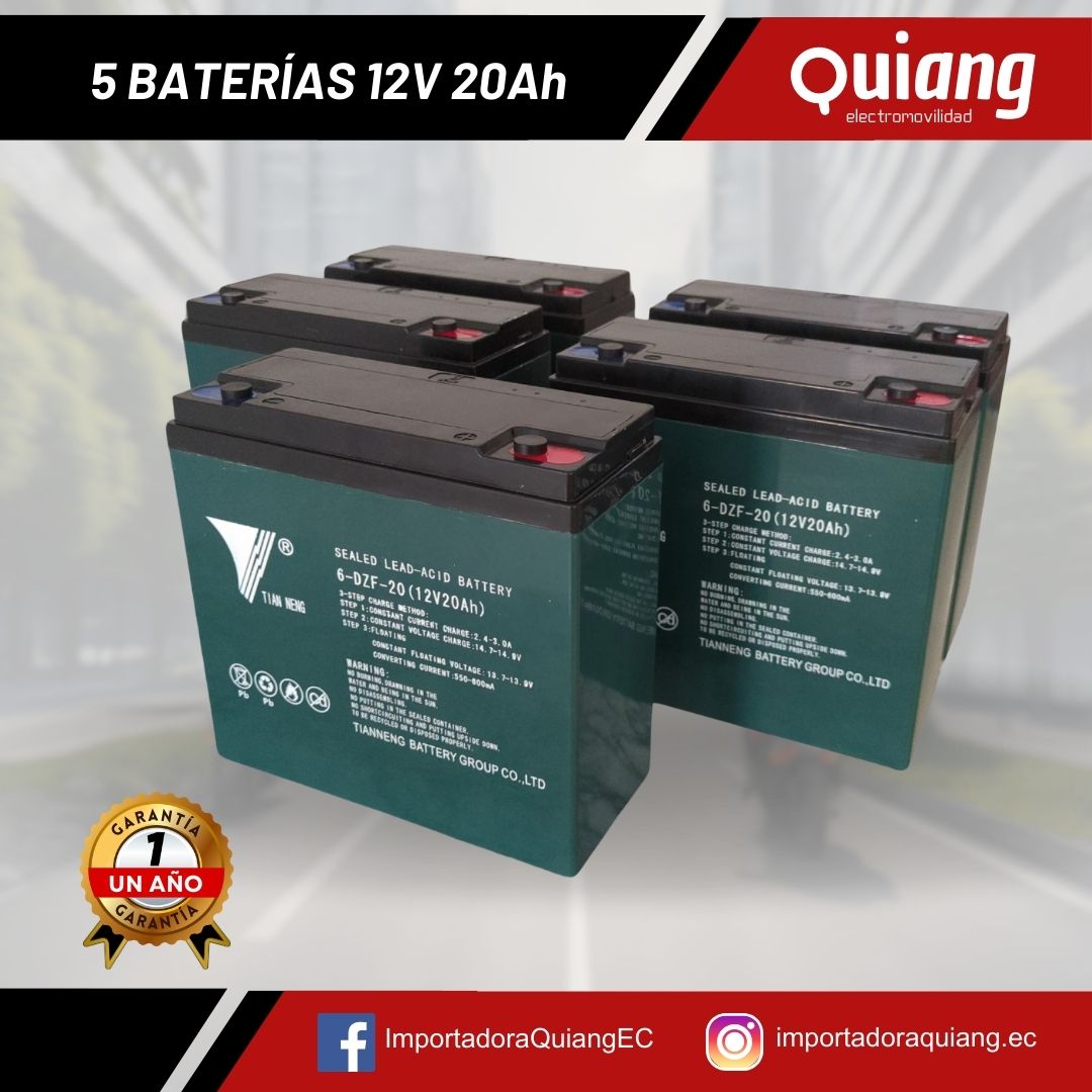 ¿Necesitas 5 Baterías 12V20Ah? Si tu moto eléctrica es de 60V, es muy probable que este sea el pack que necesitas. Estas baterías son el estándar para modelos de motos con motores de 800W a 1500W. Si ves la referencia 6-DZF-20 en tus baterías actuales, ¡este es el reemplazo ideal!
